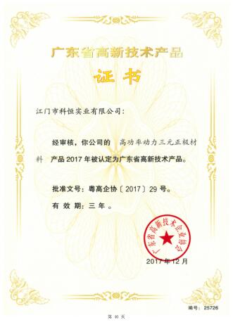 序號產品名稱發證時間1新型窄帶發射UVB熒光粉2017年2銪鋰激發硼酸鍶紫外熒光粉2017年3高功率動力三元正極材料2017年4高能量密度523三元正極材料2017年5鋰離子電池用4.45V高電壓鋰鈷正極材料2017年6鋰離子電池用動力型523三元正極材料2017年74.4V高電壓耐高溫型鋰鈷氧鋰離...