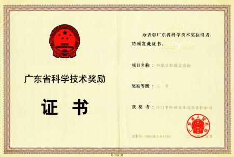 級別名稱獎勵等級廣東省科學技術獎雙激活鋁酸鹽藍粉三等獎廣東省科學技術獎全光譜新型稀土發光材料三等獎廣東省科學技術獎白光LED稀土發光材料三等獎廣東省科學技術獎液晶顯示器背光源冷陰極發光材料三等獎江門市科學技術獎高涂覆率綠色稀土發光材料一等獎江門市科學技術獎新型環保紫外發射稀土發光材料一等獎江門市科學...